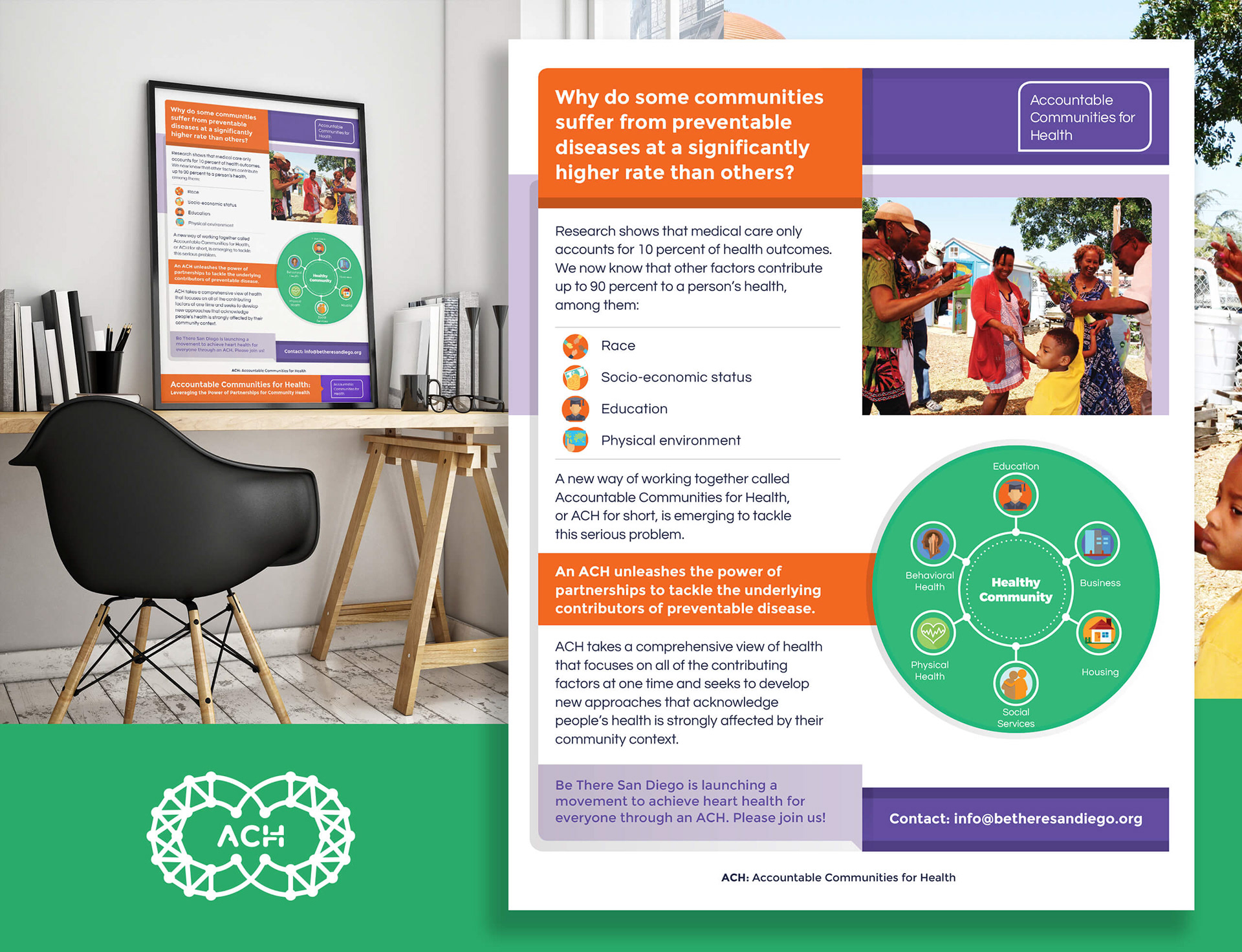 An ACH takes a comprehensive view of health that focuses on all the contributing factors at one time and seeks to develop new approaches that acknowledge people’s health is strongly affected by their community context.